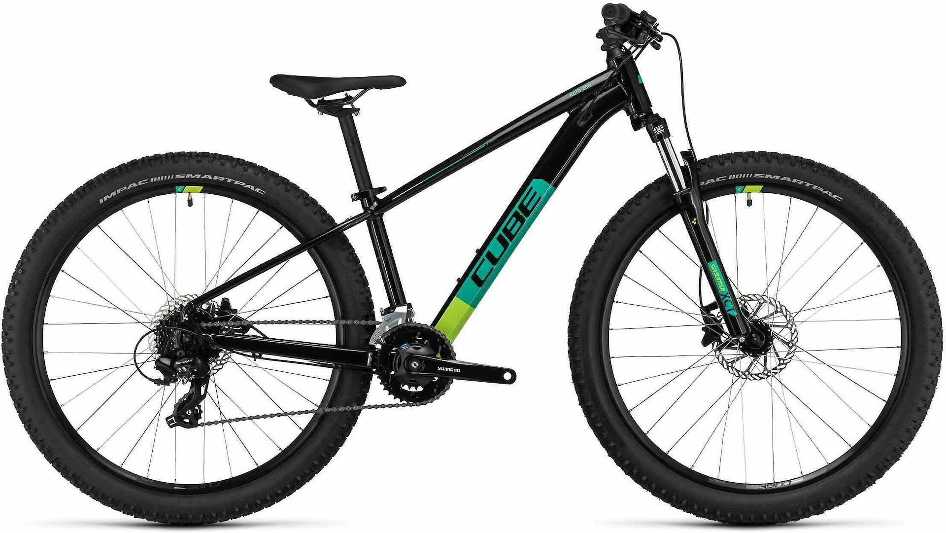 Als waschechtes Mountainbike für Nachwuchs-Ripper kommt das Acid 260 Disc mit allen Schikanen daher! Sein schlanker Aluminiumrahmen und die Suntour Federgabel zeigen sich von ruppigen Trails völlig unbeeindruckt. Die Shimano 2x8-Gang Schaltung macht dank ihrer hohen Übersetzungsbandbreite jede Route und jeden Anstieg zum Spaziergang. 1a-Geschwindigkeitskontrolle und sicheres Anhalten bei allen Wetterbedingungen sind das Spezialgebiet der Clarks Scheibenbremsen. Last, but not least haben wir griffige 2.25 Zoll breite Reifen und eine ganze Reihe hochwertiger CUBE Komponenten verbaut. Das Ergebnis ist ein standesgemäßes Trail-Bike speziell für ambitionierte junge Rider!