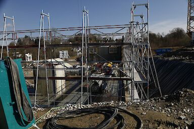 Der Bau geht gut voran. Vier Wochen nach dem Start der Arbeiten am neuen Firmenstandort von Zweiradsport Geyer in der Bad Wurzacher Ziegelwiese ist Stefan Geyer „sehr zufrieden“.