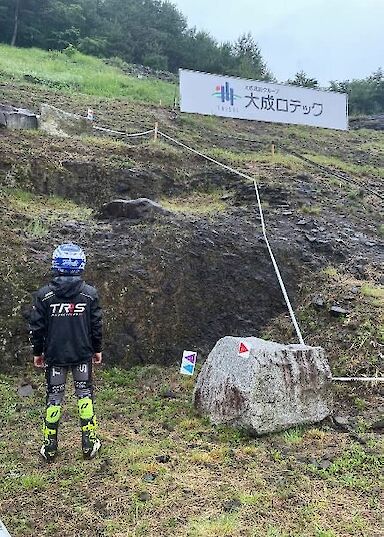 Die 12 Sektionen waren alle rund um das Areal der Strecke gebaut. Die meisten waren am Hang, in dem Steine gesetzt wurden. Vom Stil also eher Indoor, aber durch die steilen Auffahrten am Hang trotzdem eine gute Mischung. Die letzten vier Sektionen waren dann an einem sehr steilen Felshang gebaut. Durch den Regen aber sehr sehr rutschig. Nach der Sektionsbesichtigung war klar, dass es ver-dammt schwer werden würde, weil es so nass war.
