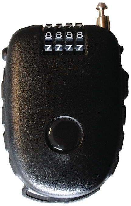 schwarz,SB-Verpackungaufrollbares Kabelschloss mit 4 Zahlenscheiben f?r pers?nlichen Sicherheitscode Kabel im Schloss eingerollt und durch Knopfdruck rollt sich das Kabel wieder auf Kabell?nge: 90 cm Kabeldurchmesser: 2,4 mm