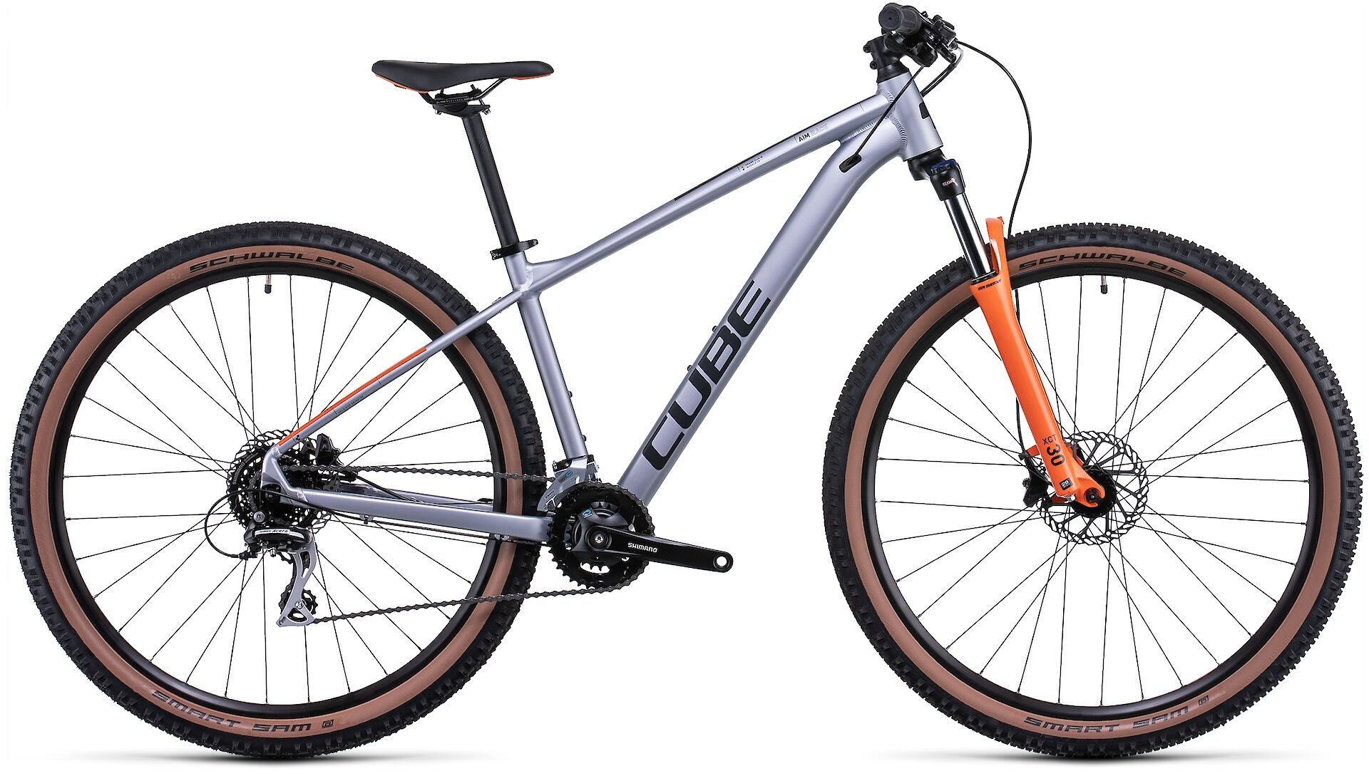 Wie bei CUBE wissen das nur zu gut: Oft sind es kleine Details, die den entscheidenden Vorteil bringen. Deshalb haben wir beim neuen Aim Race eine Suntour Gabel mit 100 mm Federweg verbaut, die blockiert werden kann. Und wir haben uns für kraftvoll und zuverlässig zupackende, einfach bedienbare hydraulische MT200 Scheibenbremsen von Shimano entschieden. Kombiniert wird das Ganze mit griffigen, komfortabel rollenden 2.25 Zoll breiten Reifen - das Ergebnis: top Kontolle, jederzeit und überall. Ebenfalls von Shimano kommt die breit gefächerte 2x8-fach Schaltung, die geschmeidig und präzise von Gang zu Gang wechselt. Und dank unserem SizeSplit System gibt es für jede Körpergröße das optimal abgestimmte Aim Race. Bleibt nur die Frage: Wo soll's am Wochenende zum Biken hingehen?